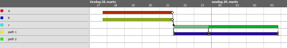 In the example the resource “a” has a transition rule with the path “path 1:setup” and the resource b has “path 1:workload”.