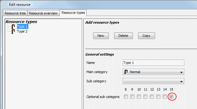 This is done in “Edit->Resource” dialog. Select the “Resource types” tab and check the “Optional sub category” shown below.