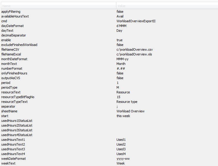 This will export the resource workload to an Excel sheet or a CSV text file, per day/week/month in a specified period.