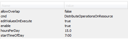 A selection of operations on the same resource can be distributed according to an entered number of hours per day, starting at an entered time of the day. The number of hours per day and the starting time of the day can be entered in the macro settings, but user can be prompted for the values, where the default values are showed and can be changed.